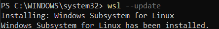 jika ada error seperti gambar diatas, kamu perlu menginstall wsl versi ke2, gunakan command berikut di powershellmu secara beurutan dan satu persatu.